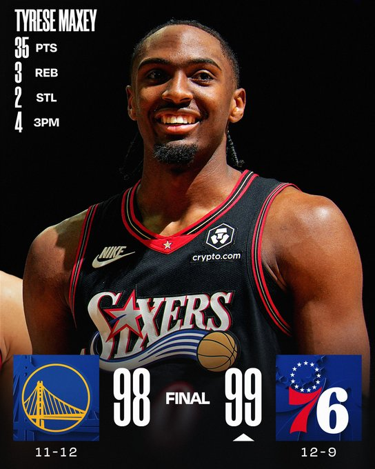 Tyrese Maxey lideró la noche con 35 puntos y un tapón salvador en la última jugada, mientras que el novato VJ Edgecombe metió el tip-in ganador con 0.9 segundos. Los Warriors, sin Curry ni Butler y luego sin Draymond, remontaron 24 puntos gracias a Pat Spencer (16) y Melton (14 en su regreso). Embiid volvió con 12 tantos, aunque Philly sufrió para cerrar un juego que parecía controlado.