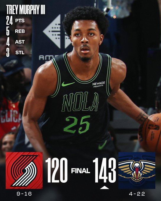 New Orleans Pelicans 143 – Portland Trail Blazers 120