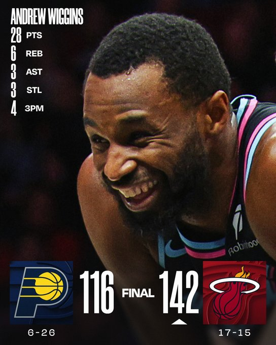 Miami arrasó en el último cuarto (44-22) con 28 puntos de Andrew Wiggins y 28 de Jaime Jaquez Jr. para una paliza desde la rotación (60-23 en puntos de banca). Sin Herro ni Adebayo, el Heat volvió a pasar los 140 y estiró su buen momento. Indiana sufrió su octava caída consecutiva.