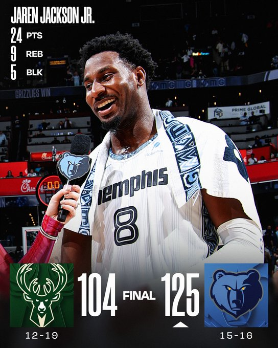 Con el regreso de Ja Morant (17 puntos y 10 asistencias) y una actuación dominante de Jaren Jackson Jr. (24 puntos, nueve rebotes y cinco tapas), los Memphis Grizzlies superaron claramente a unos Milwaukee Bucks sin Giannis Antetokounmpo, que siguen padeciendo defensivamente.
