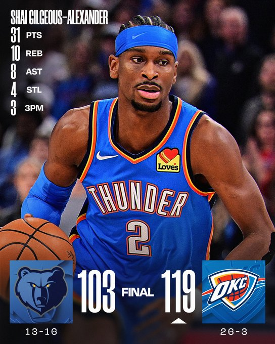 Oklahoma City Thunder 119 – Memphis Grizzlies 103