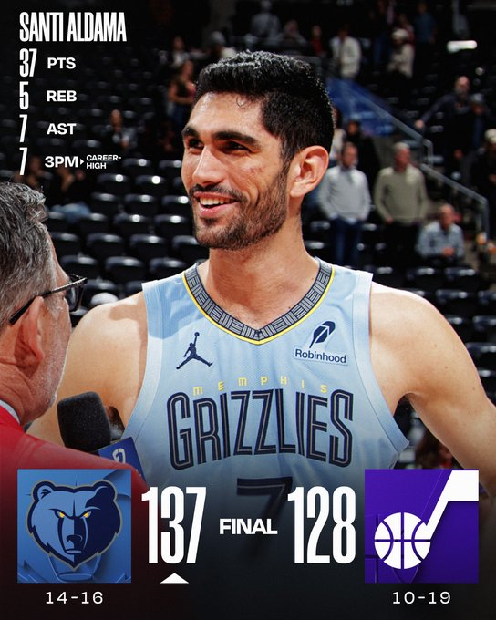 Memphis Grizzlies se llevó un lindo encuentro ante Utah Jazz. La figura del juego fue el español Santi Aldama, que está atravesando un gran momento y aportó 37 puntos, 7 asistencias y 5 rebotes.