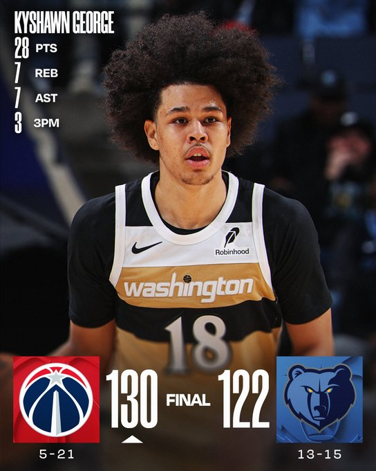 Aldama, que empezó como suplente, terminó el partido con un 15 de 23 en tiros de campo (65,2%), incluido un 5 de 9 desde el perímetro (55,6%). Pese a estos números, los Grizzlies (11-15) perdieron por 130-122 frente a Washington Wizards, el peor equipo de la liga, después de dilapidar una ventaja de 20 puntos. Liderado por McCollum y George, ambos con 28 puntos, Washington pisó fuerte de visitante, se impuso por 130-122 y logró frenar a Santi Aldama, quien, pese a sus 37 puntos y 10 rebotes, no logró evitar la derrota de los Grizzlies.