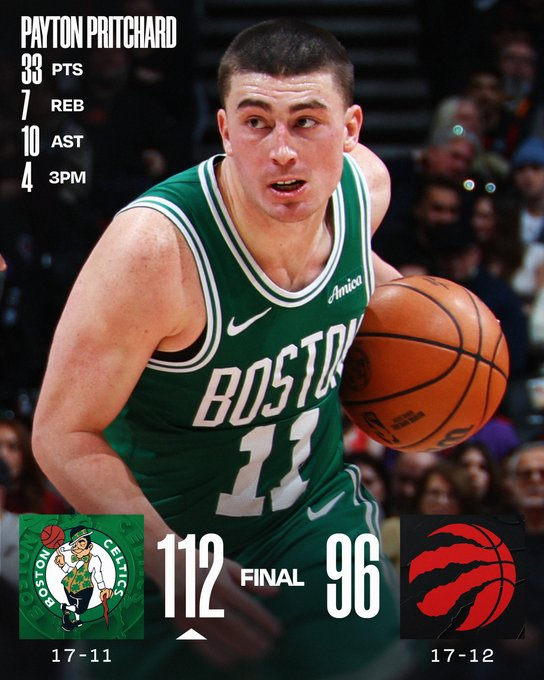 A Boston, sin Jaylen Brown por enfermedad, lo lideró Payton Pritchard con 33 puntos, 7 rebotes y 10 asistencias. Celtics cerró un gran triunfo 112-96 ante Raptors por 112-96Boston ganó con 33 puntos, 10 asistencias y 7 rebotes de Payton Pritchard. Ingram anotó 24 en Toronto.