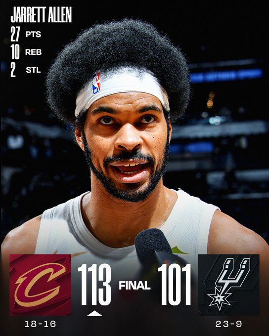 Traspié en casa de los Spurs en un enorme arranque de temporada, cayendo de local ante Cleveland por 12, pese al gran partido de Wemby (26 y 14 rebotes). Los Cavs tuvieron a su propio gigante destacado, Jarrett Allen, con 27 y 10 rebotes. Segunda derrota en cadena para los texanos.
