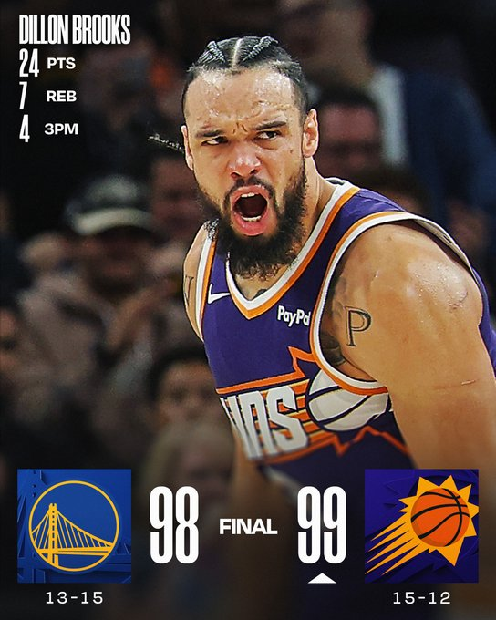 Jordan Goodwin definió el partido con un libre a 0.4 segundos del final tras un rebote ofensivo vital. Devin Booker anotó 25 puntos, 23 en el segundo tiempo. Golden State tuvo a Jimmy Butler con 31, pero pagó caro sus 20 pérdidas y una noche errática de Stephen Curry (3/13 de campo).