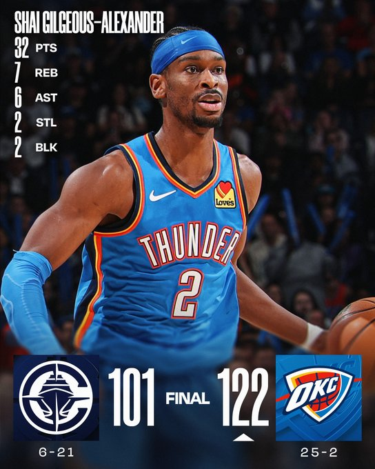 Shai Gilgeous-Alexander anotó 32 puntos en tres cuartos y estiró a 98 su racha de partidos consecutivos con al menos 20 tantos, la segunda más larga de la historia. El Thunder, ahora 25-2 y 13-0 en casa, forzó 28 pérdidas rivales y las castigó con 39 puntos. Sin Harden, los Clippers se apoyaron en Kawhi Leonard (22) pero nunca tuvieron control.