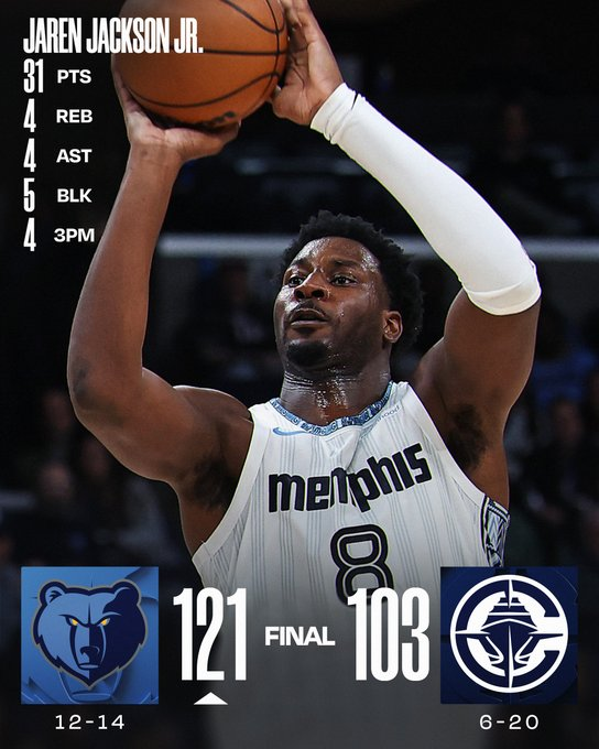 Jaren Jackson Jr. marcó el rumbo temprano con 31 puntos, 21 de ellos en la primera mitad, y Cam Spencer explotó con 27 tantos y 7 triples para el tercer triunfo de Memphis sobre los Clippers en menos de tres semanas. Ja Morant sumó 12 puntos en su segundo juego tras la lesión, en un equipo que aceleró desde el tercer cuarto. En Los Ángeles, Kawhi Leonard anotó 21 y Kris Dunn 17, pero James Harden fue contenido en 13 unidades.
