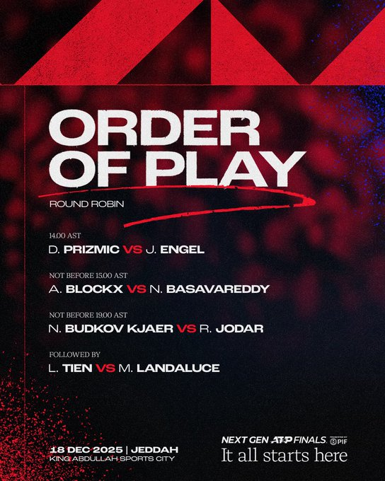 Se disputo la primera jornada de las Next Gen ATP Finals 2025 que comenzaron con un alto voltaje competitivo, confirmando por qué este torneo es el principal escaparate del futuro del tenis masculino. El debut dejó partidos ajustados, remontadas y una gran sorpresa en la fase de grupos disputada este miércoles en Jeddah.