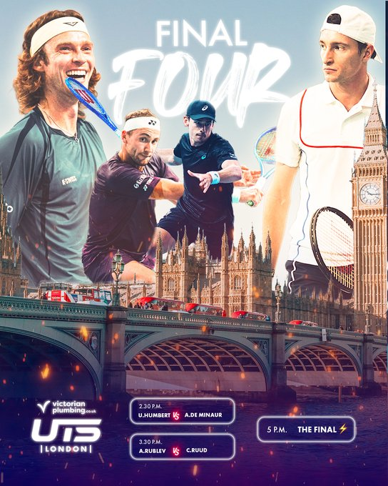 El defensor del título de este UTS Londres, Alex De Minaur, terminó segundo del grupo A, dominando a Tomas Machac para validar su clasificación (10-15, 16-11, 16-13, 16-12). Se enfrentará en semifinales al primero del grupo B, es decir, Ugo Humbert. El francés, vencedor de David Goffin el día anterior, eliminó a Francisco Cerundolo (16-10, 14-12, 11-18, 16-9).