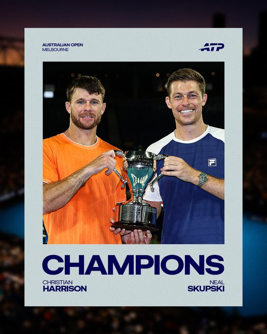 Skupski levantó el 18º título de su carrera y el segundo en categoría de Grand Slam, sumando el triunfo australiano al logrado en Wimbledon 2023 (c/Koolhof). Por su parte, Harrison conquista el primer major de su carrera, con cuatro copas acumuladas en la especialidad de dobles.