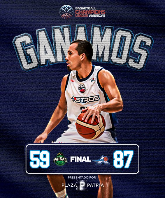 Astros de Jalisco (MEX), por segundo partido consecutivo, lució firme en los dos costados de la cancha y ratificó su condición de favorito en el Grupo A de la Basketball Champions League Americas al vencer como visitante a Paisas Basketball Club (COL) por amplio margen de 87-59, en el Coliseo Iván de Bedout de Medellín, Colombia.