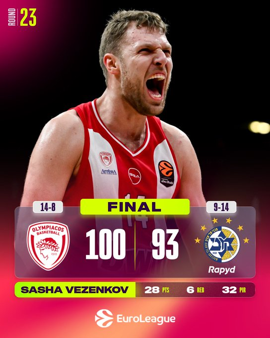 Vezenkov lideró a todos los anotadores con 28 puntos y 10 de 14 en tiros de campo. Nikola Milutinov combinó sus 13 puntos con 9 rebotes y Fournier registró 12 puntos y 9 asistencias. Roman Sorkin lideró al Maccabi con 21 puntos y Jeff Dowtin anotó 15, de los cuales 14 fueron en la segunda mitad.
