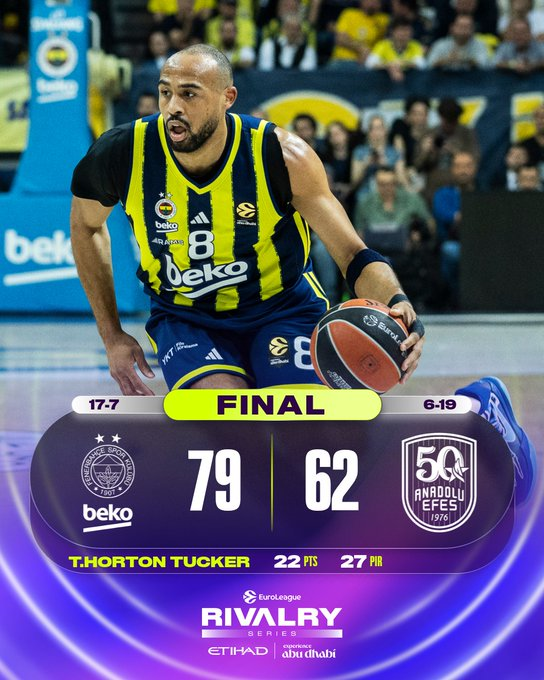 El Fenerbahçe se alzó con el derbi turco al golear al Efes por 79-62 en el Ulker Sports and Event Hall. El Fenerbahçe mejoró su marca de 17-7 en la clasificación y acumula una racha de cinco victorias consecutivas en casa. Por su parte, el Efes cayó a 6-19 con su novena derrota consecutiva, igualando su racha más larga en la historia de la competición, que se remonta a 2014.
