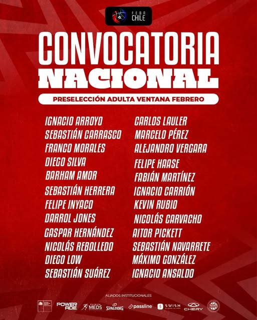 El Cuerpo Técnico de la Selección Chilena de Básquetbol dio a conocer la nómina de 24 deportistas potencialmente convocables para la próxima ventana clasificatoria rumbo al Mundial de Qatar 2027.