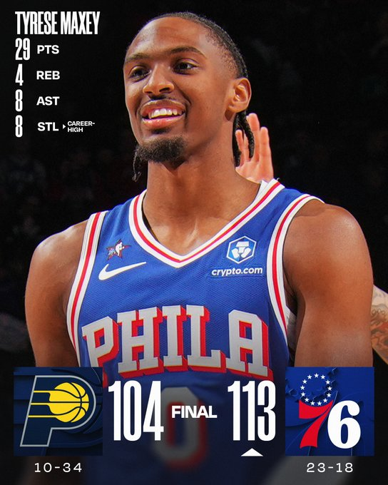 Philadelphia se llevó un triunfo importante ante Indiana por 113-104 con 30 puntos de Joel Embiid y 29 de Tyrese Maxey. En los Pacers lo mejor pasó por los 25 puntos de Andrew Nembhard y los 24 de Pascal Siakam.