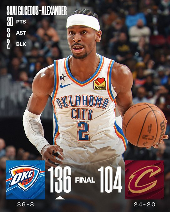 Oklahoma City Thunder 136 – Cleveland Cavaliers 104