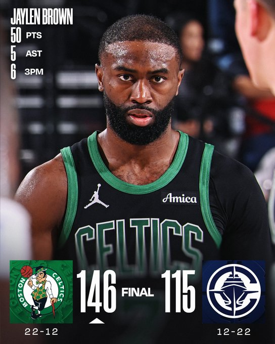 Jaylen Brown igualó su récord personal con 50 puntos y lideró una paliza que cerró una gira 4-1 para Boston. Derrick White sumó 29 y los Celtics lanzaron 55% de campo y 47% en triples, con Brown y White combinando 11 bombas. En los Clippers, Kawhi Leonard y John Collins anotaron 22 cada uno antes del quiebre definitivo. La racha de seis victorias consecutivas de Los Ángeles llegó a su fin con autoridad visitante.