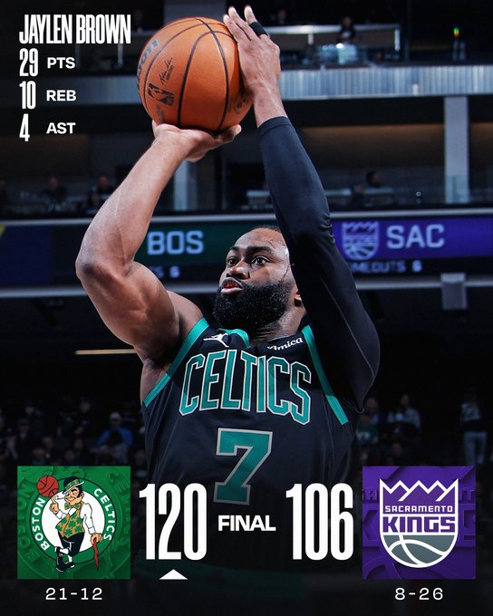 Jaylen Brown fue el máximo anotador con 29 puntos y 10 rebotes, encabezando el quiebre definitivo de Boston en el último cuarto. Además, Derrick White aportó 16 puntos y 7 asistencias. Sacramento tuvo en DeMar DeRozan a su figura con 25 puntos, pero volvió a ceder en el cierre.