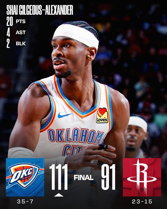 Houston Rockets 91 – Oklahoma City Thunder 111