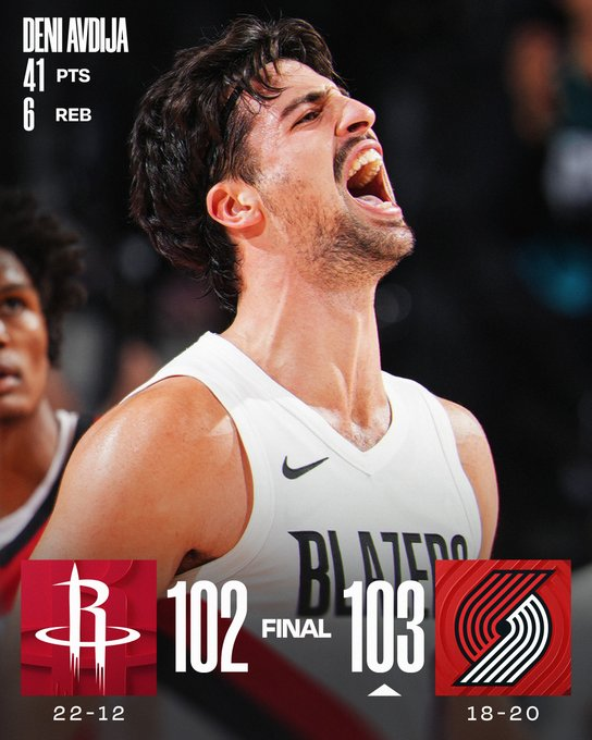 Deni Avdija tuvo una noche monumental con 41 puntos para sostener a Portland en un final caótico que se definió tras revisión en la última jugada. Kevin Durant brilló con 37 puntos para Houston, que estuvo a centímetros de ganar sobre la bocina. Los Blazers resistieron sin margen de error y sumaron su cuarta victoria consecutiva.