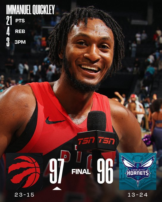 Charlotte Hornets 96 – Toronto Raptors 97