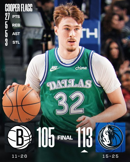 En medio de las ausencias, Dallas encontró liderazgo en Cooper Flagg, autor de 27 puntos y 3 robos, clave para cerrar el partido. Naji Marshall aportó 22 tantos y Klay Thompson sumó 18 desde el banco con seis triples. Brooklyn tuvo en Michael Porter Jr. a su máximo anotador con 28 puntos, más un doble-doble de Day’Ron Sharpe. Los Mavericks controlaron el juego sin sobresaltos en el cierre.