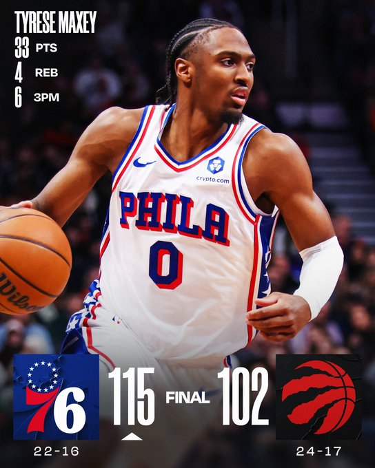 Toronto Raptors 102 – Philadelphia 76ers 115