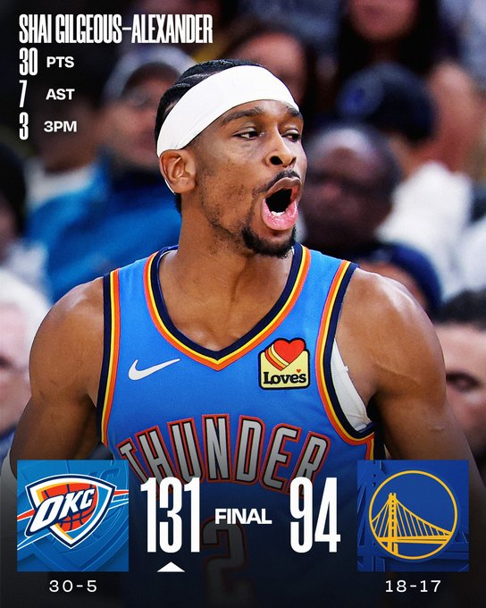 Oklahoma City Thunder 131-94 Golden State Warriors