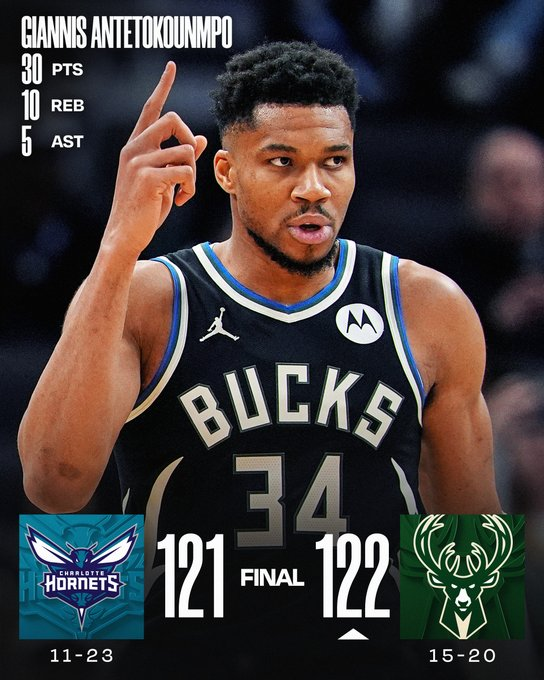 Milwaukee Bucks 122-121 Charlotte Hornets