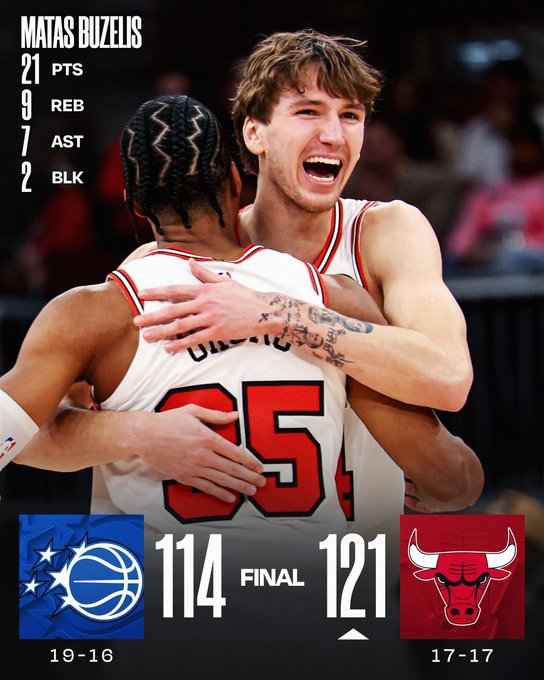 Chicago remontó y se quedó con la victoria liderado por Matas Buzelis, que anotó 21 (17 en el segundo tiempo), y Kevin Huerter con 20. Paolo Banchero hizo 31 para Orlando, pero los Bulls cerraron mejor el último cuarto pese a seguir sin Giddey y Coby White.