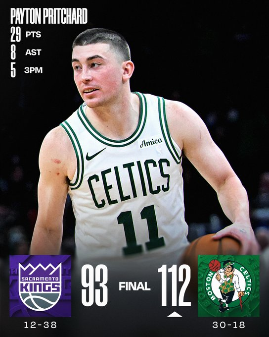 Sin Tatum, obvio, pero también sin Jaylen Brown, Payton Pritchard se hizo cargo de la ofensiva principal de Boston, con 29 puntos, para vencer con comodidad a Sacramento. El portugués Neemias Queta tuvo también un gran desempeño con 10 puntos y 15 rebotes.