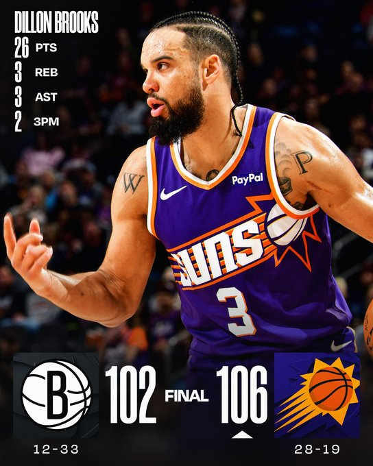 Además, los Brooklyn Nets del técnico español Jordi Fernández se estrellaron 106-102 en su visita a los Phoenix Suns, sin Devin Booker, tras sufrir un parcial final de 10-2. Mark Williams lideró a los Suns con 27 puntos y 13 de 16 en tiros de campo, apoyado por los 26 puntos de Dillon Brooks. Los Nets sufrieron su undécima derrota en los últimos doce partidos, pese a los 36 puntos de Michael Porter Jr.