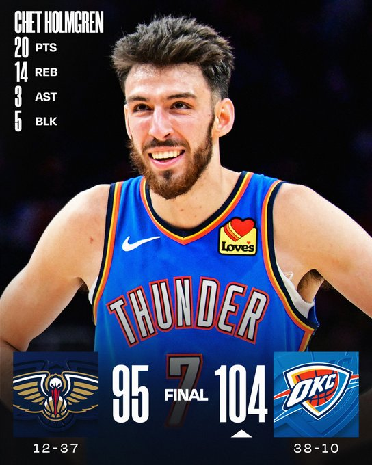 Shai Gilgeous Alexander anotó 29 puntos y lideró el 104-95 de los OKC Thunder contra los New Orleans Pelicans con el que los vigentes campeones de la NBA se reactivaron tras dos derrotas consecutivas. Los Thunder encararon el duelo con los Pelicans tras perder tres de sus anteriores cinco partidos, pero no fallaron en el Paycom Center para reforzar su liderato en el Oeste (38-10), por delante de los San Antonio Spurs (31-15).