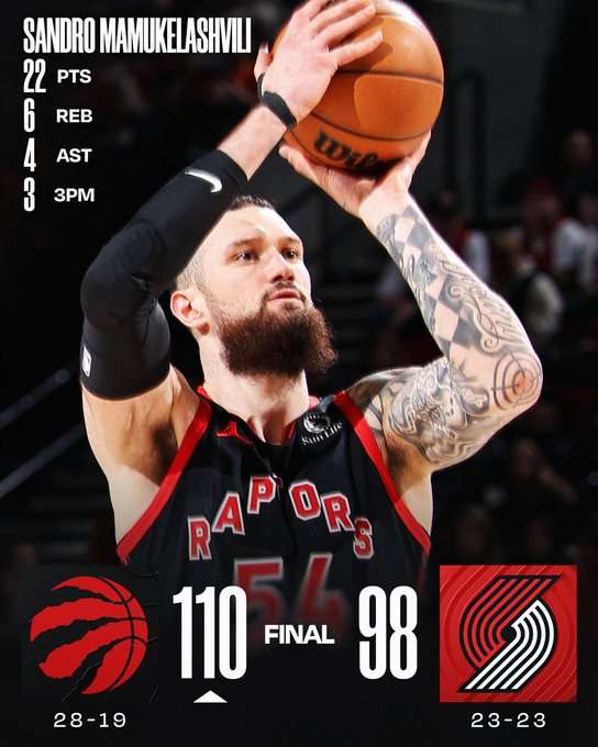 Sin Deni Avdija, su figura central, a Portland se le hizo muy difícil aguantar a los Raptors y fue derrota de local 98-110. Toronto tuvo al georgiano Sandro Mamukelashvili como principal vía de gol, con 22 puntos.