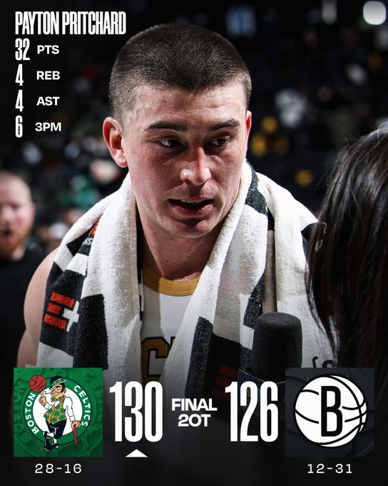 En doble suplementario y con actuación central del español Hugo González, que metió el triple para manda al partido al segundo tiempo extra, los Celtics vencieron a Brooklyn de visitantes 130-126. Jaylen Brown fue figura y triple-doble: 27 puntos, 10 rebotes y 12 asistencias. Pritchard fue letal de 3: 6/11 y 32 puntos.