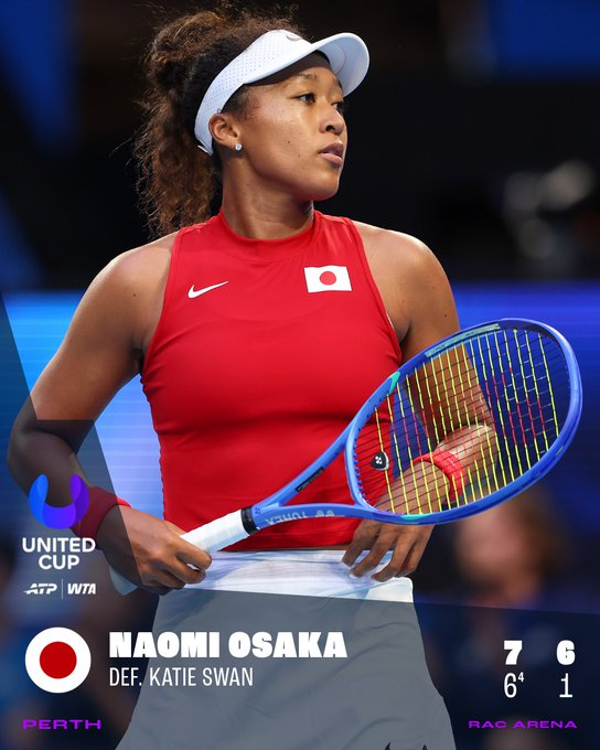 Osaka estaba originalmente programada para un segundo enfrentamiento de su carrera contra Raducanu, pero un cambio de última hora en la alineación le planteó un nuevo reto: Swan, de 26 años. Osaka superó la prueba, aunque no sin complicaciones, derrotando a Swan por 7-6 (4), 6-1 en una hora y 53 minutos. Esta fue la primera victoria de Osaka en la United Cup y la primera en la historia del equipo japonés, que debuta en el evento este año.