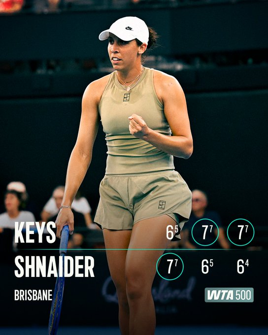 Madison KEYS (USA)[5] def. Diana SHNAIDER (RUS)[12] 6-7(5), 7-6(5), 7-6(4)