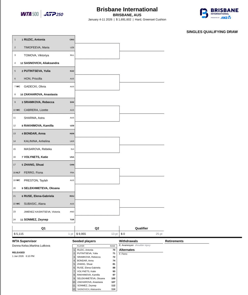 Nuevo año y apenas en el primer día del 2026 ha regresado el circuito ATP y WTA por todo lo alto, pues mientras en Perth y Sídney se celebra la United Cup 2026, también ha dado comienzo dos horas antes, la fase previa del WTA 500 de Brisbane con nombres como Antonia Ruzic, Kamilla Rakhimova o Maria Timofeeva.