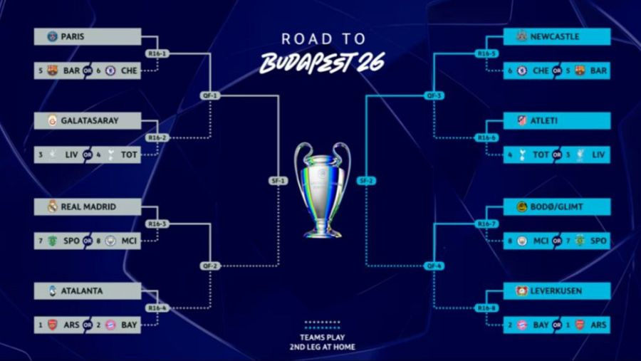El Real Madrid, PSG, Galatasaray, y Atalanta irán por el lado plateado del cuadro; Atlético de Madrid, Newcastle, Bodo-Glimt y Leverkusen por la ruta azul.