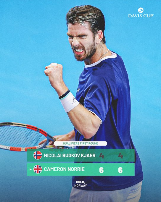 Con la confianza del 1-0, Cameron Norrie ganó el punto, en los papeles, más peleado del primer día, con un 6-4 y 6-4 ante Nicolai Budkov Kjaer por 6-4 y 6-4.