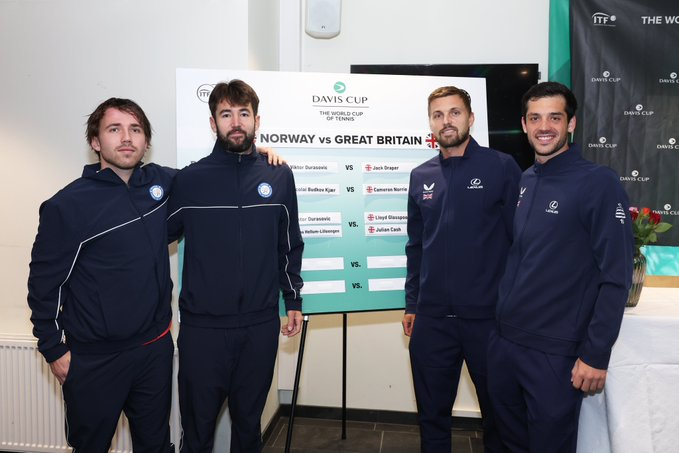El panorama luce brillante para los dirigidos por Leon Smith, ya que Julian Cash y Lloyd Glasspool, top 3 del mundo, enfrentarán en primer turno (16hs. hora local) a Durasovic y Lukas Hellum Lilleengen. Más tarde, cerrarán la serie los singles Budkov-Draper y Norrie-Durasovic.