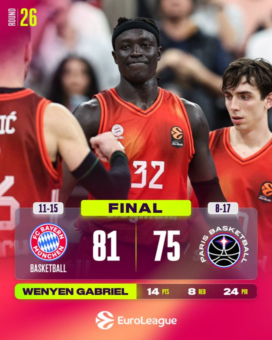 Entró Andreas Obst, quien anotó 8 de los últimos 10 puntos del Bayern para inspirar su quinta victoria en casa en seis partidos.Los locales mejoraron su récord a 11-15. Mientras tanto, el París sufrió su cuarta derrota en cinco partidos, cayendo a 8-17. Andreas Obst anotó 26 puntos, la mayor cantidad del partido, con 5 de 10 triples, incluyendo 2 triples cruciales en el momento decisivo. Justinian Jessup anotó 15 puntos, mientras que Wenyen Gabriel logró su máximo de la temporada con 14. Por el equipo parisino, Nadir Hifi anotó 17 puntos y Jared Rhoden 15