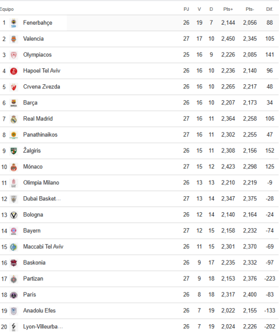 Comenzó la vigésima séptima fecha de la Dase regular de la Euroliga con cinco partidos y dejando otros cinco para el viernes por la noche, Repasemos lo ocurrido este jueves 5 de febrero