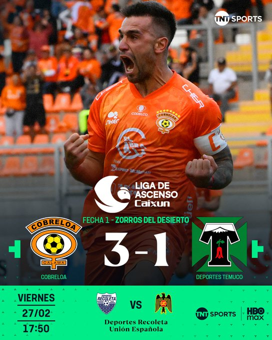 Con dos duelos se cerró la primera fecha de la Liga de Ascenso del futbol chileno y un partidazo fue el que realizó Cobreloa en su estreno en el torneo 2026, donde logró derrotar a su símil de Deportes Temuco bajo la lluvia y con presencia de tormentas eléctricas, por 3 goles contra 1.