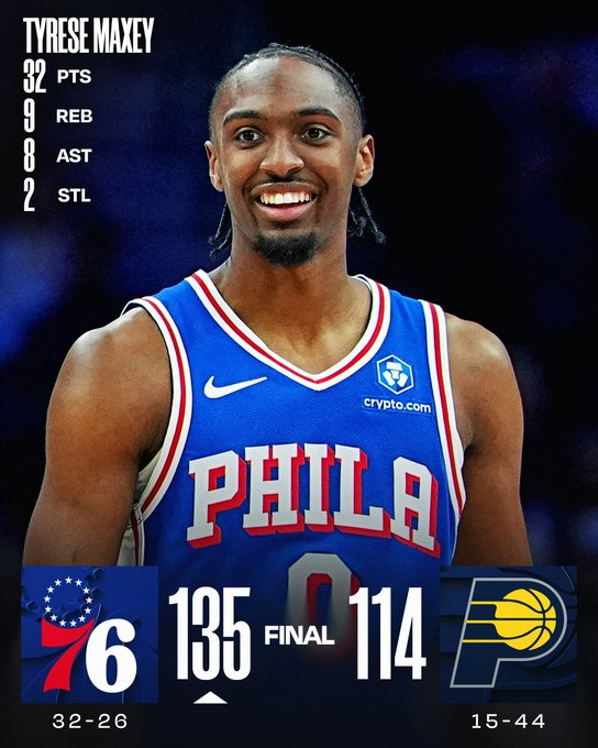 Philadelphia 76ers se apoyó en el regreso de Joel Embiid, autor de 27 puntos, y en los 32 de Tyrese Maxey para dominar a Indiana Pacers en Indianápolis. Tras un mal primer cuarto, Filadelfia reaccionó con un parcial de 17-0 en el segundo período, se fue al descanso arriba y liquidó el juego con un gran tercer cuarto, imponiendo su poder en la pintura (82-52).