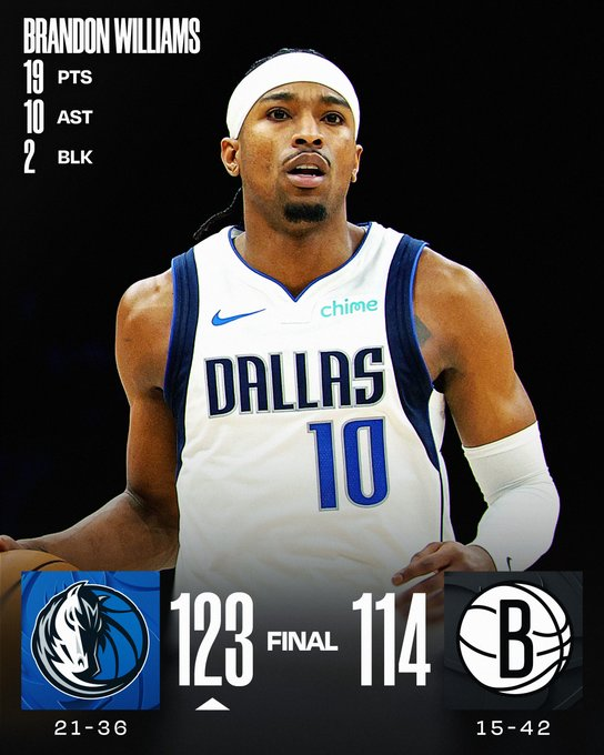 Pese a llegar el mismo día del partido por una tormenta de nieve, Dallas Mavericks no se resintió y venció a Brooklyn Nets con 22 puntos de Marvin Bagley III y 21 de Naji Marshall. Dallas anotó 76 puntos en la primera mitad y supo responder cuando Brooklyn se acercó en el cierre.