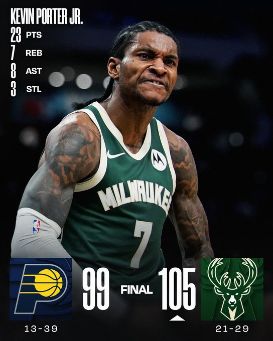 Milwaukee se quedó con un buen partido en casa ante Indiana Pacers. Los vencedores encontraron en Kevin Porter Jr. a su mejor jugador, ya que metió 23 puntos, bajó 7 rebotes y repartió 8 asistencias.
