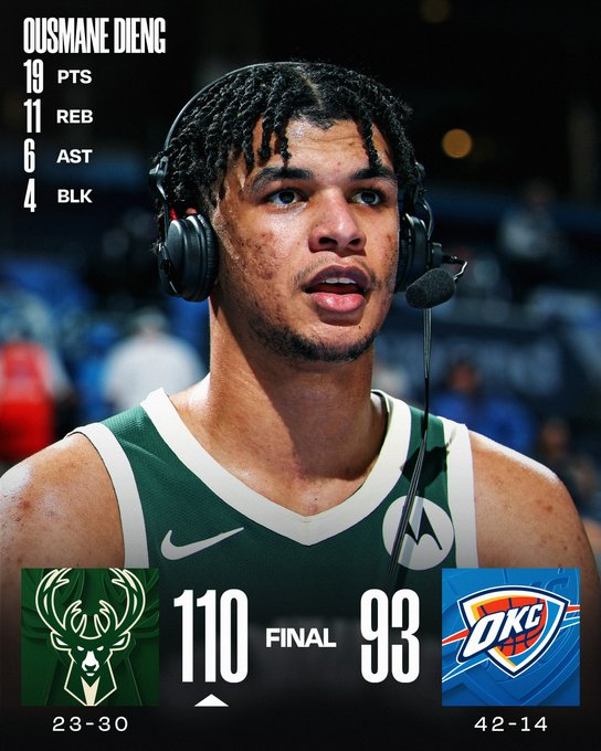 Sin Shai Gilgeous-Alexander ni Giannis Antetokounmpo, el duelo previo al All-Star se apoyó en piezas secundarias y rotaciones rearmadas. Ousmane Dieng, ex OKC, anotó 19 puntos con los Bucks. En el Thunder, debutó luego de un año y medio de su draft, Nikola Topic, el serbio fue ovasionado y anotó sus primeros 2 puntos en la liga, mientras el goleador del equipo fue Isaiah Joe con 17.