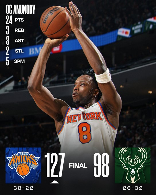 Milwaukee Bucks 98 – New York Knicks 127